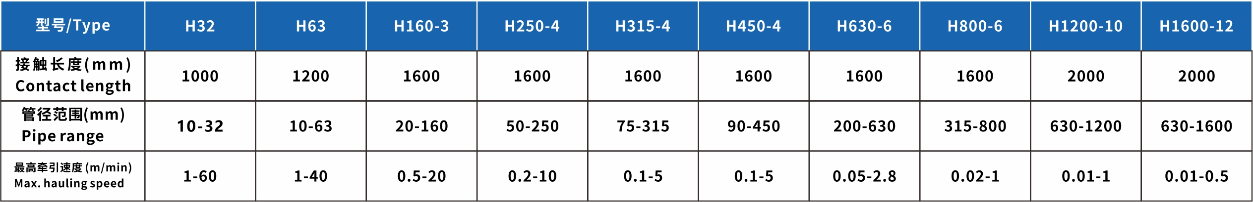 1、 超長(zhǎng)的接觸長(zhǎng)度在管材和膠塊之間摩擦系數(shù)很低的情況下,仍能保證很高的牽引力;