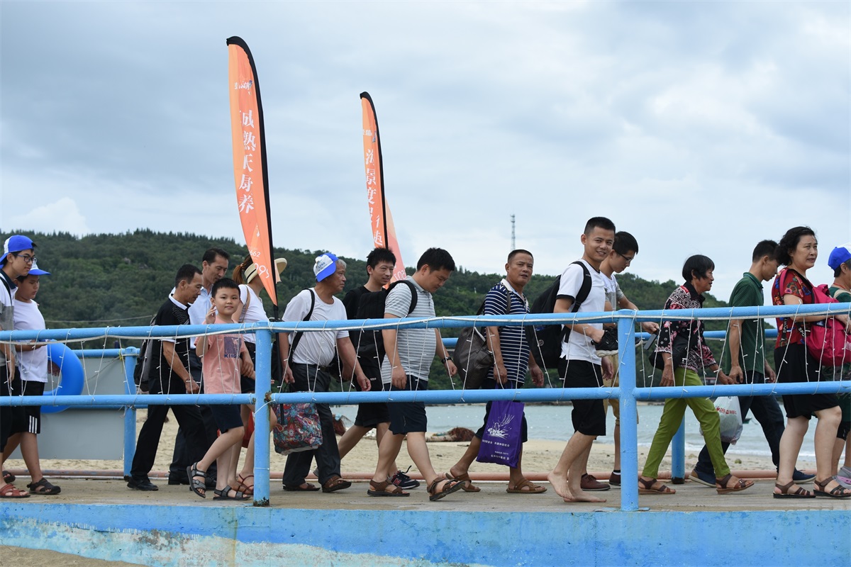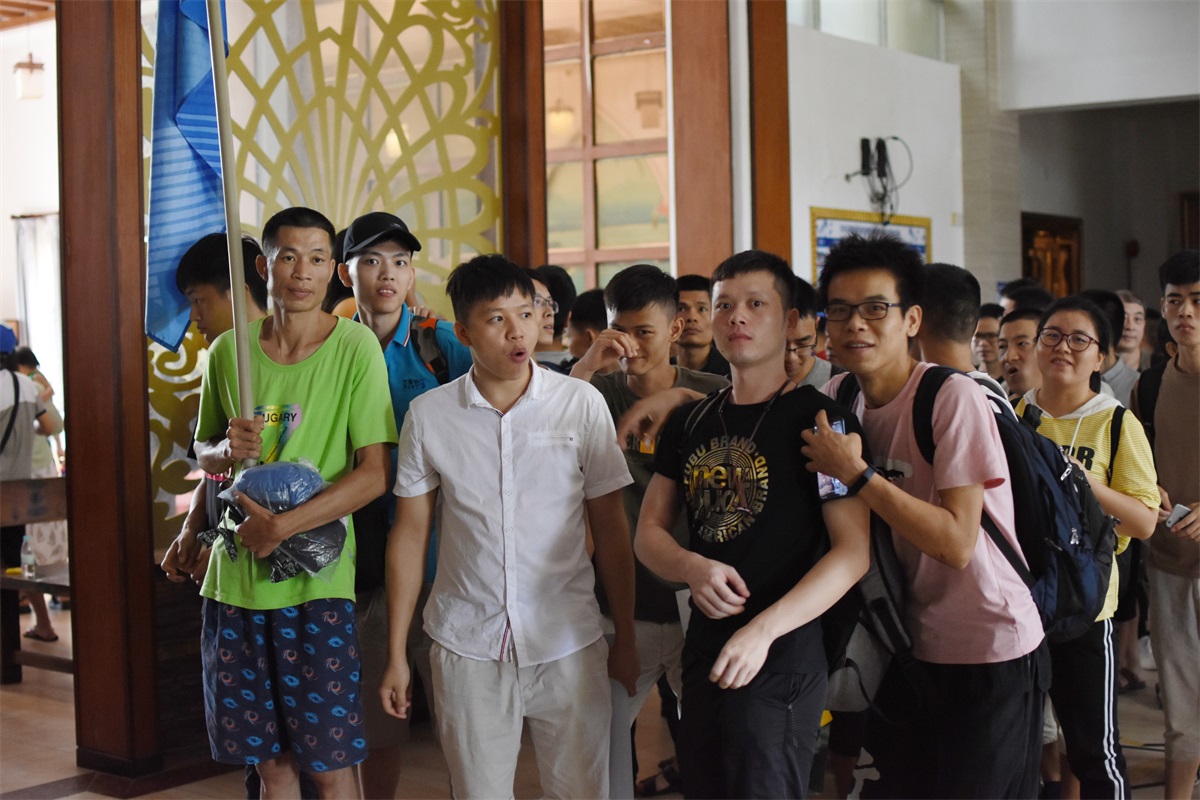 8月19號一大早,微風(fēng)拂面,大家都喜笑顏開,懷著無比激動興奮的心情踏上前往沙扒灣青州島的旅途。手中天藍(lán)色的旗幟,仿佛已感受到大伙兒的陽光與自信,也在空中翩翩起舞。